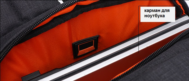 - Третє відділення для ноутбука до 15,6 дюймів (28х39) з посиленим дном і кишенею для планшета (20х24 см) із захисною демпфувальною прокладкою.